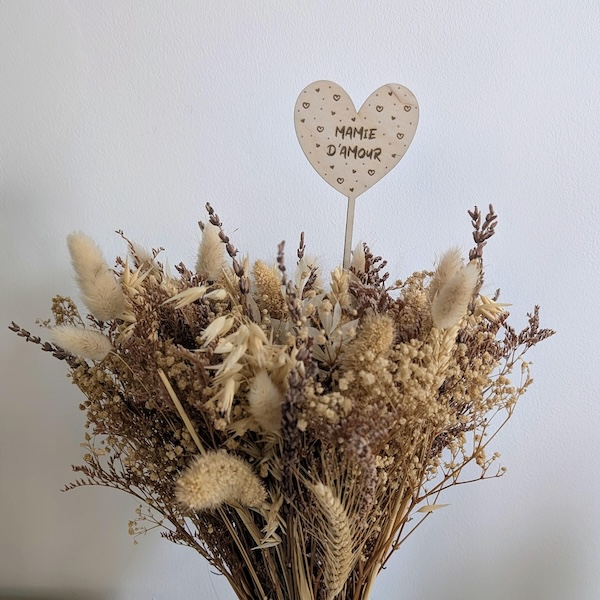 Cette décoration en bois peut être piquée dans un bouquet ou une plante par exemple.