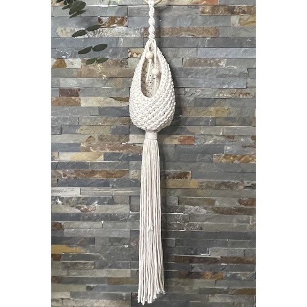 Ce modèle en macramé est de couleur beige (blanc ou noir sur commande)
